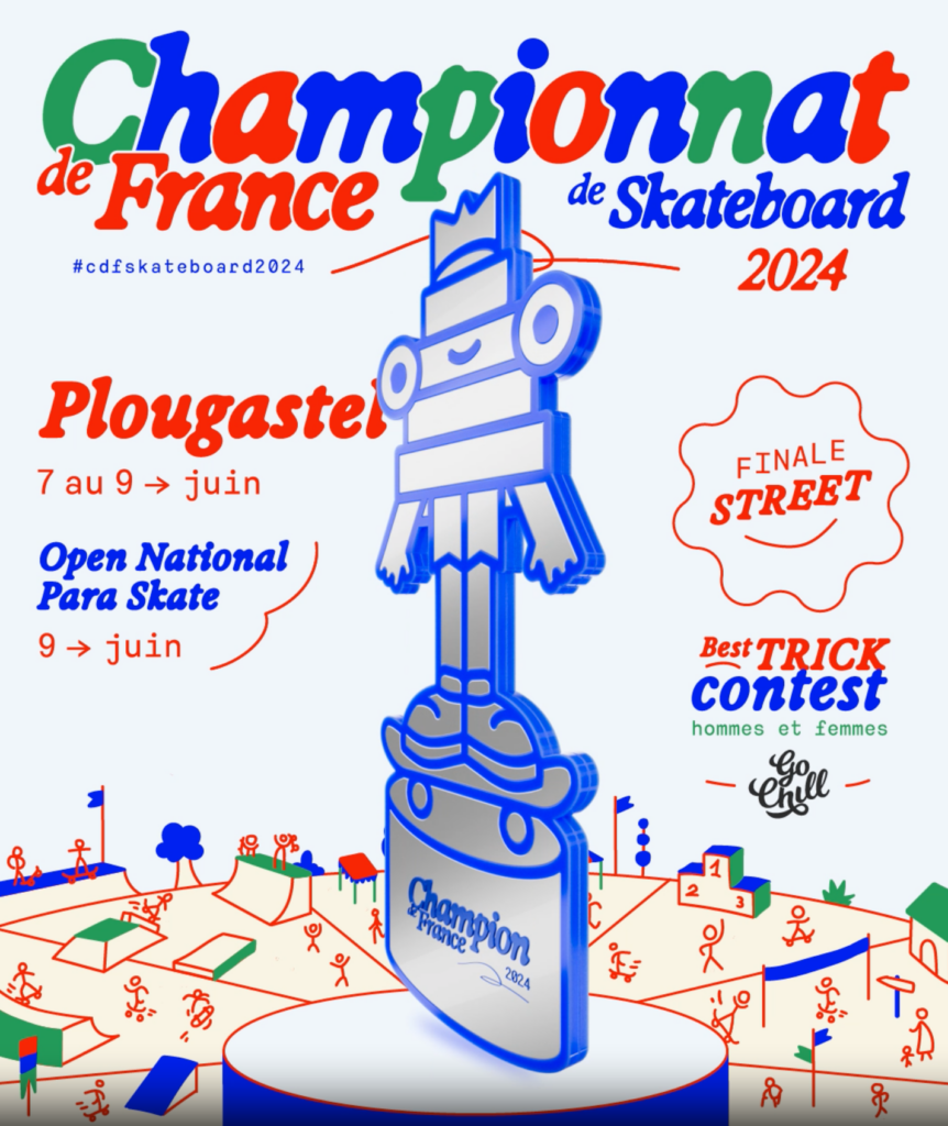 Rendez vous à Plougastel pour cette finale des championnats de France de skateboard dans le skatepark indoor tout neuf du PLO skate club, du 7 au 9 juin 2024.